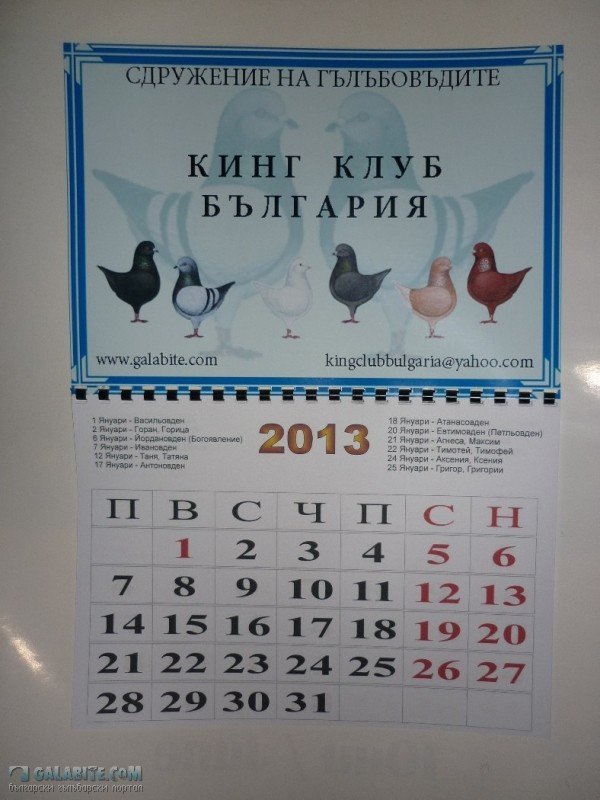Календар за 2013 г.- Календар за 2013 г.