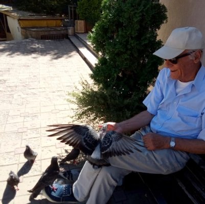 Еньо Атанасов идва всеки ден на пазара, за да нахрани своите приятели. Дивите гълъби похапват от ръката на 87-годишния бивш строителел...Почти не пропуска да им даде хляб или жито, за което животинките са му изключително благодарни. Атанасов твърди, че животните усещат всичко и затова си избират от кого да ядат и от кого да бягат.